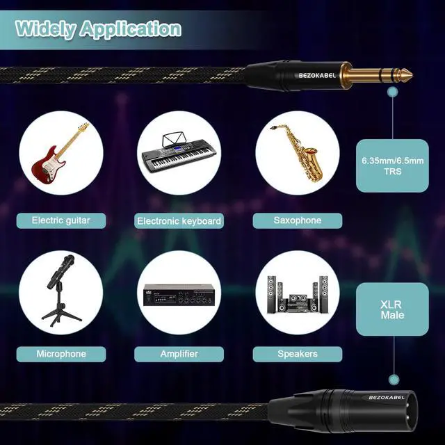 Work with any devices has a standard 6.35mm aux jack to XLR female, such as microphones, mixer, power amplifier, speaker, soundbox, keyboard, electric guitar, saxophone, keyboard and etc.