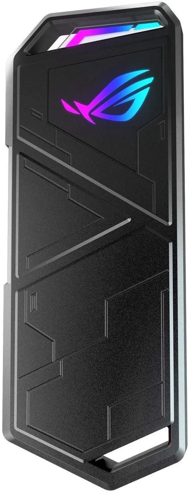 ROG StrixArion is an SSD enclosure for M.2 PCIe NVMe SSDs (2230/2242/2260/2280) and features USB-C 3.2 Gen 2x1 for up to 10Gbps data transfer speeds. Its aluminum alloy case includes thermal pads, ASUS Aura Sync light effects, protective bumper, and R-hook.