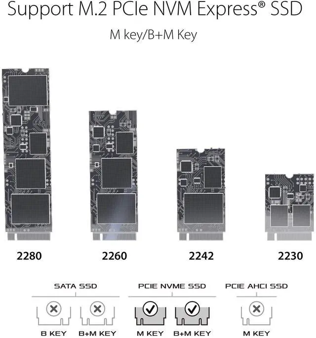 ROG Strix Arion fits up to a 2TB 2230/2242/2260/2280 form factor M.2 PCIe NVMe SSD with M key/ B+M key.