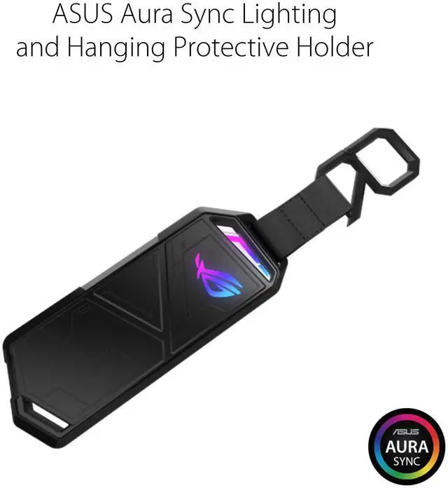 A stylish detachable R-hook strap allows you to conveniently secure Strix Arion to your bag or backpack when on the go. Additionally, the bumper around Strix Arion offers absorbs bumps and knocks to keep the SSD running smoothly.