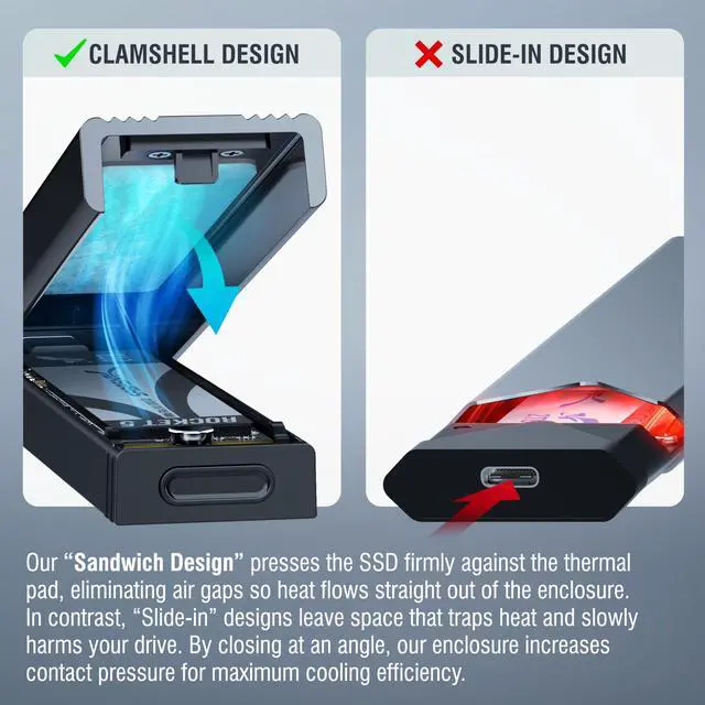Housed in an ultra-slim aluminum enclosure with an ABS frame, this enclosure delivers durability while remaining lightweight and travel-ready. Passive cooling helps maintain stable performance during extended use, whether at home, in the office, or on the go.