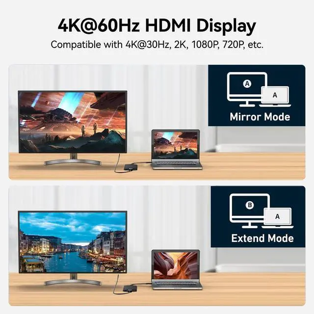 Instantly expand your USB-C port into a Pro 4K@60Hz HDMI Output, a 5Gbps USB 3.0 port, and a 100W PD charging port.