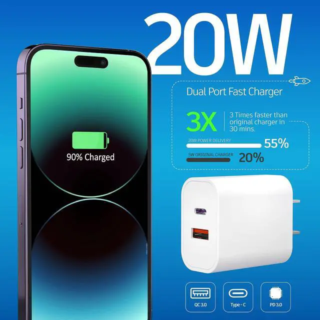 Blazingly Fast Charging: With a maximum power output of 20W, this charger can rapidly charge your devices, significantly reducing downtime. Whether you're charging your smartphone, tablet, or other compatible gadgets, expect a lightning-quick charging experience.