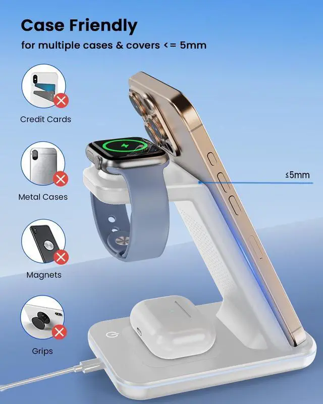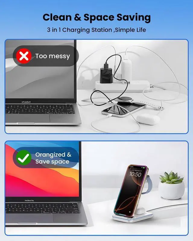 Looking for a highly efficient charger to juice up your Apple Products at the same time? Look no further than CIYOYO 3 in 1 wireless charging stand. It's easy to grab your devices and go without worrying about snagging cords. Well fits your bedroom, study room, hall, office desk and much more.