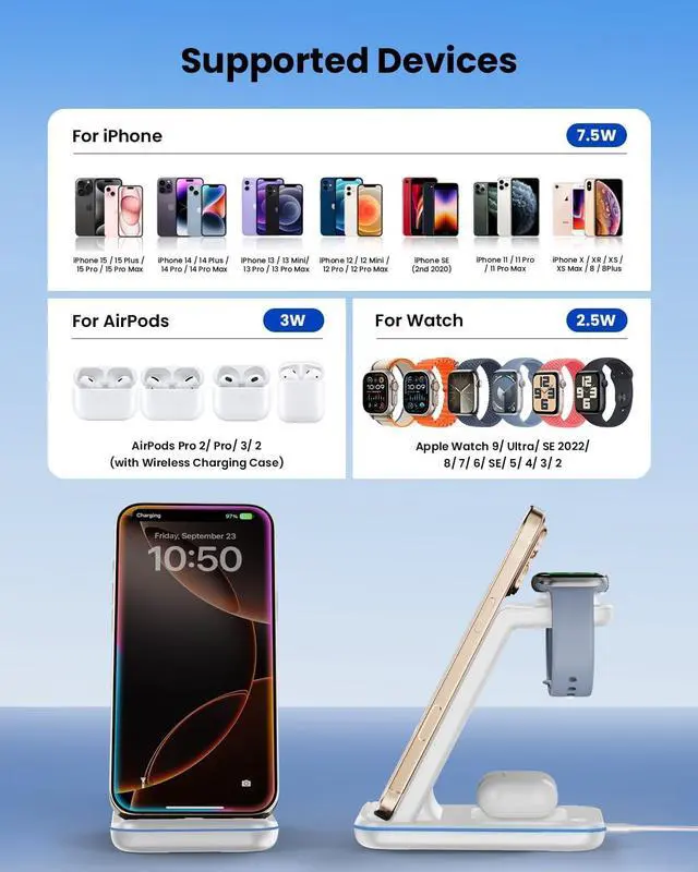 | Popular products in the last 7 days 3 in 1 Wireless Charger Charging for iPhone & Galaxy Wireless Charging Station CIYOYO 3 in 1 Wireless Charging Station for iPhone & Apple Watch & AirPods Bid farewell to wait around for ages for your devices to charge Enjoy Safe Charging All Day And Night! Keeps You Entertained While Charging Embrace Convenient Tech Life All in One, Wide Compatibility