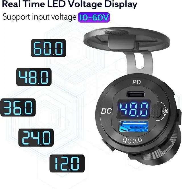 This Item2 Pack High Voltage USB Outlet 12V 24V 36V 48V 60V Aluminum Car Charger Socket, PD 30W USB C and QC 36W Car USB Port Waterproof Cigarette Lighter Power Adapter DIY Kit with Switch for Ship Truck, etc.RecommendationsHigh Voltage USB Outlet 12V 24V 36V 48V 60V Aluminum Car Charger Socket, PD 30W USB C and QC 36W Car USB Port Waterproof Cigarette Lighter Power Adapter DIY Kit with Button Switch for Ship Truck, etc. Golf Cart USB Charger Port Outlet For EZGO Club Car Yamaha Golf Car 12V By Automotive Authority LLC 10L0L Golf Cart Quick Charge 3.0 Outlet Dual USB Charger Socket for Yamaha EZGO Club Car,12V Input Double USB Ports Waterproof