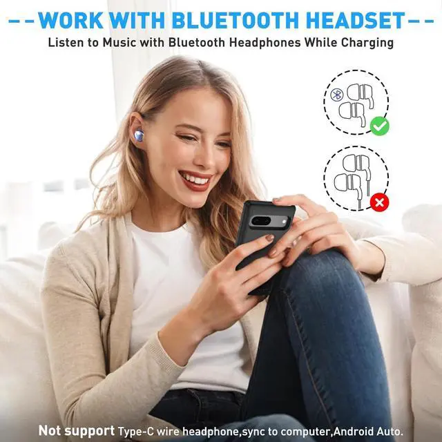 Convenient Kickstand & Dual Device Charging- Foldable stand of google pixel 7 battery case allows you to watch videos or FaceTime hands-free, while USB port in the right side give you the second port to charging your backup cell phone(USB cable is not included). Note: sync to computer, Type-C wire headphone, Android Auto and Quick Charge, Wireless Charging NOT SUPPORTED.