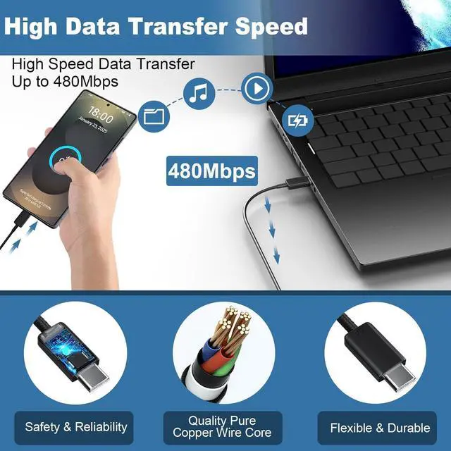 Automatically stops charging when battery capacity is full to ensure your device safety and longevityUSB C Phone Charger The 6.6FT detachable USB-C to USB-C charger cable is included offers a user-friendly reversible design so you can charge your phone from any other c type power source such as your computer or a portable battery. Use the cable to sync and transfer files at blazing speeds with your Galaxy or any other compatible smartphone or laptopcompatible smartphone or laptopWhat You Get2x Auorld 45 Watt USB-C Super Fast Charging Block 2x 6.6FT USB C to USB C Fast Charging Cord.