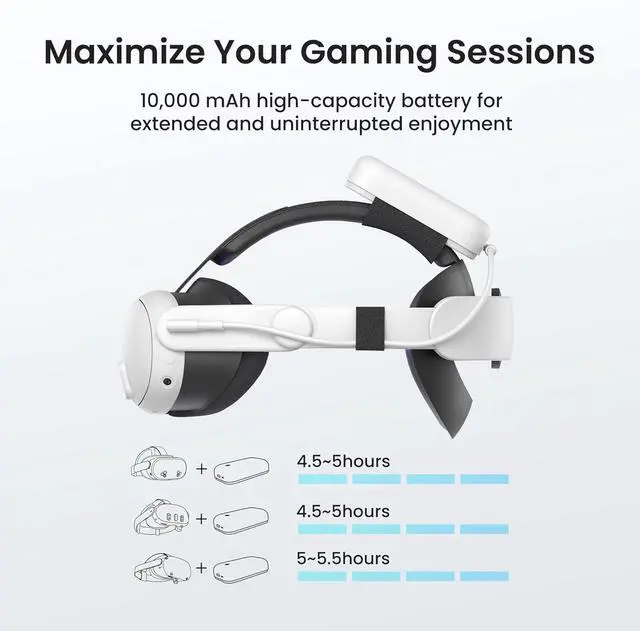 Extend Your Play Time: Built-in 10000mAh industrial-rank, high-energy density battery with enhanced working efficiency, adding 8 hours of VR time for Quest 2 and 4 hours for Quest 3 (APP depends on) when fully charged.