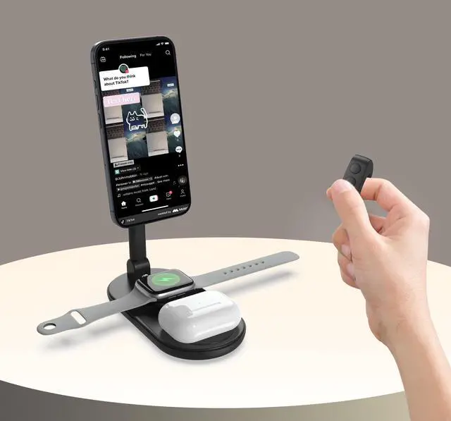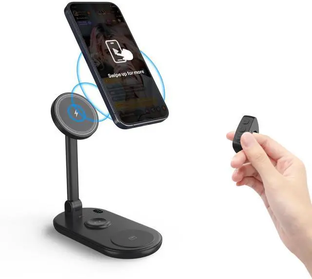 Fast Charging 15W Magnetic Wireless Charger With Remote Control and Selfie Foldable Magsaferred Wireless Charger for iPhone 17