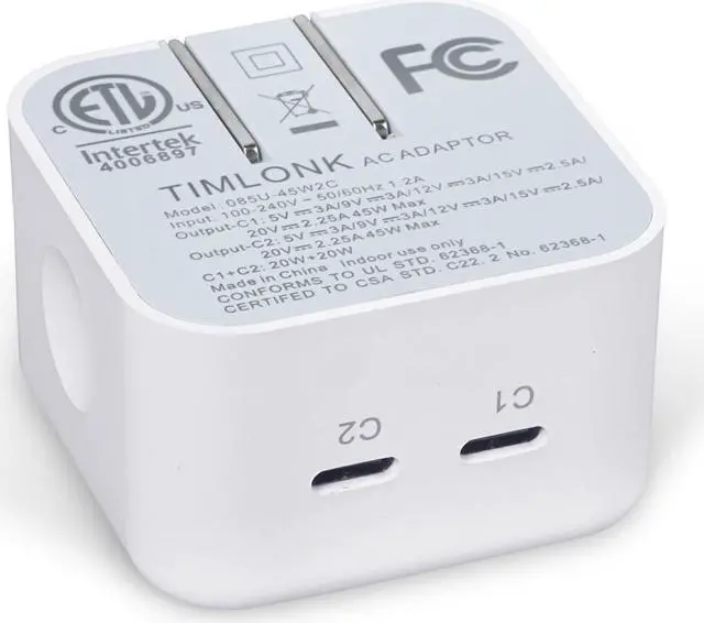 TIMLONK 45W Dual USB C PD Charger [ETL Certified, GaN Tech].