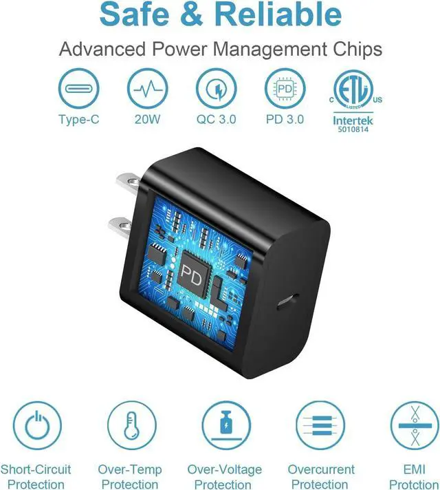 Safety Efficient Fast Charging The Power Delivery Wall Charger for i Phone owns bulit-in multi-protection system avoiding from over-voltage over-charge over-heat etc. The smart chip including in the MFi certified lightning cable match the current required by the device automatically charge your i Phone/i Pad device fast safely and steadily. Firewire Cables Tangle-free 6 Feet length is convenient for usage while charging and sync at home/office/travel in bed hotel rooms and more. What you will get 1 * 6 feet long MFI-certified fast charging cableand 1*20W super rapid fast charging USB C