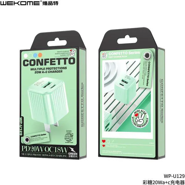 A charger with PD20W+QC18W for both Android and iPhone.