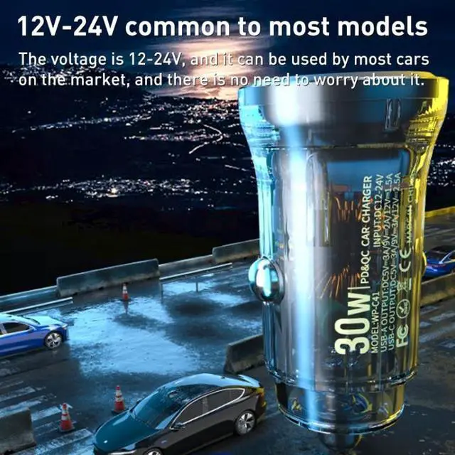 WEKOME WP-C41 Vanguard Series 30W MAX Full protocol Quick Car Charger USB + Type-C