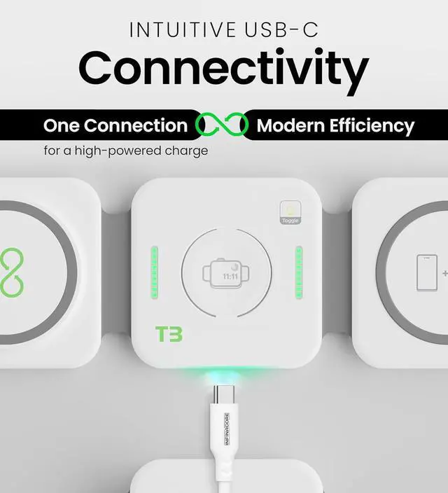 Introducing InfinaCore, where innovation meets convenience. At InfinaCore, we design cutting-edge tech solutions to simplify your everyday life. Our 3-in-1 Charging Station embodies our commitment to delivering sleek, reliable, and efficient charging solutions for Apple users. Premium Build Quality: This is a three-in-one charger for Apple products, crafted with meticulous attention to detail, ensuring durability and reliable performance. We offer a commitment to quality with each product built to last, providing consistent results and superior functionality every time. Advanced Technology: This charging mat for Apple devices features the latest, safest, and most efficient components. With 20% faster charging, you save both time and money. This travel charger for Apple phones, watches, and Airpods is designed with cutting-edge technology to meet modern needs. Versatility & Usability: This charging mats innovative design adapts to your lifestyle, whether youre a busy professional, frequent traveler, or tech enthusiast. Compact and efficient, this 3-in-1 charger for Apple products integrates seamlessly into daily routines, offering convenience and effortless charging wherever you go. Whether you're at home or on the go, this 3-in-1 charger for Apple products, featuring powerful charging capabilities and portability offers the ultimate convenience for powering up your iPhone, AirPods, and Apple Watch simultaneously. With InfinaCore, experience the perfect blend of style, functionality, and modern technology. Embrace the future of smart charging with InfinaCore.
