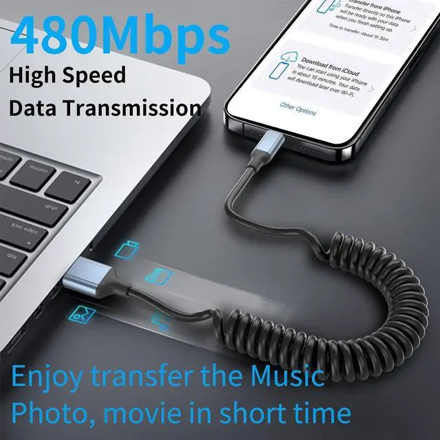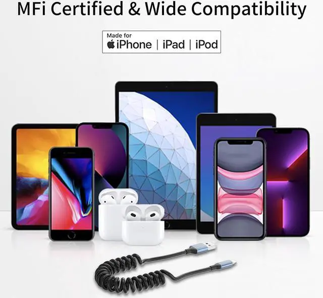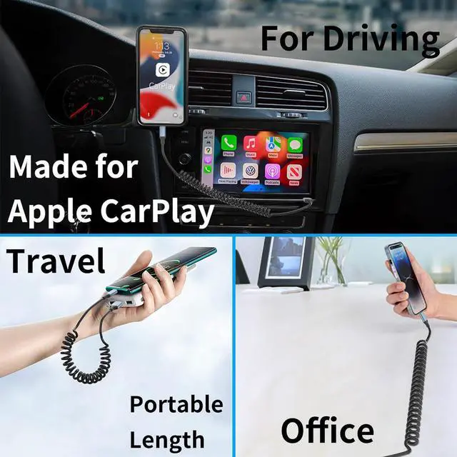 MFi CertifiedThe iphone cord for car iPhone car charger cord has a built-in MFI certified chip, and short iphone charger cord be able to connect to the vehicles computer to initiate Apple CarPlay effortlessly. Use the coiled cable iphone charging cord for car to get directions, answer calls, reply to messages and play the music while traveling. Apple MFi certified coiled lightning cable for car supports all iOS versions, no warning message pops up.