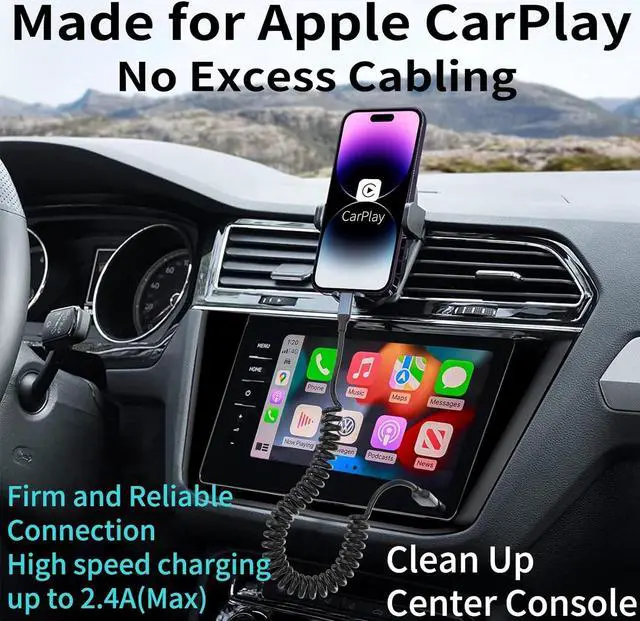 Apple CarPlay CableThe retractable iphone charger for car extension cord with spring shape design is sturdy and portable. Retractable lightning cable helps keep the car console neat, when you have to stretch the apple carplay cable, apple carplay cord stretches up to 1.5 -2 feet and readily returns to its original 12 inch length after you put the phone back without hassle of data cable clutter and tangles.