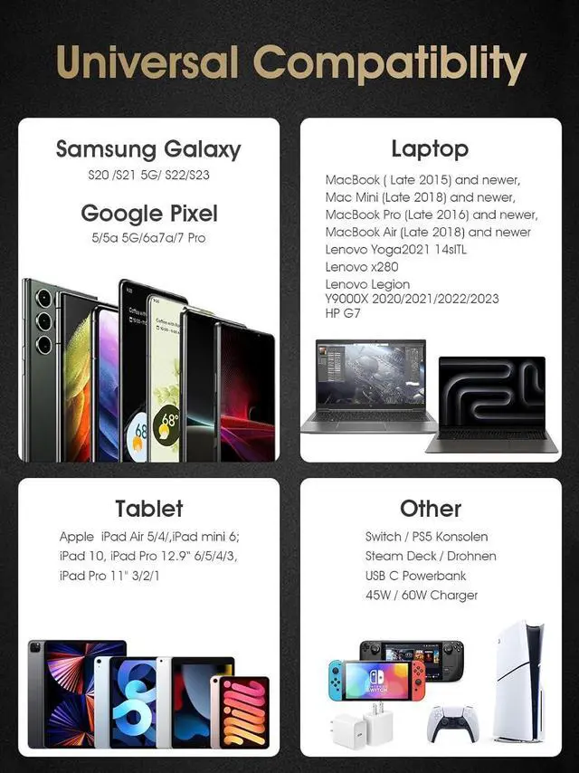 Wide Compatibility: Our USB Cables support PD 3.0 /QC 3.0 /QC 4.0 fast charging, making them compatible with a wide range of devices. Whether you have an Android phone, tablet, or any other USB-C device, this cable has got you covered.
