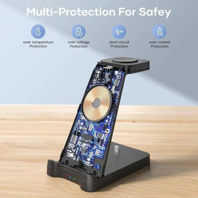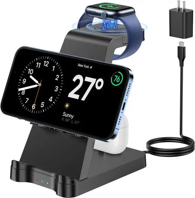 Intelligent Voltage Distribution: Equipped with high quality 20W fast wall charger and 3.3 feet type-c charging cable it is 30% faster than other iphone charging station. This iphone and watch charging station features overcurrent protection overvoltage protection and overcharge protection to keep your product charging safe.