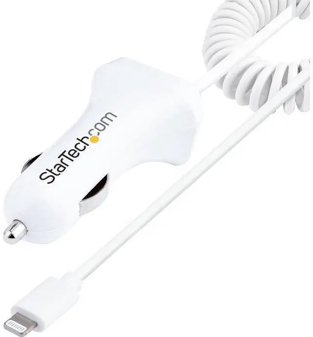 StarTech Lightning Car Charger with 1m Coiled Cable 12W White USBLT2PCARW2