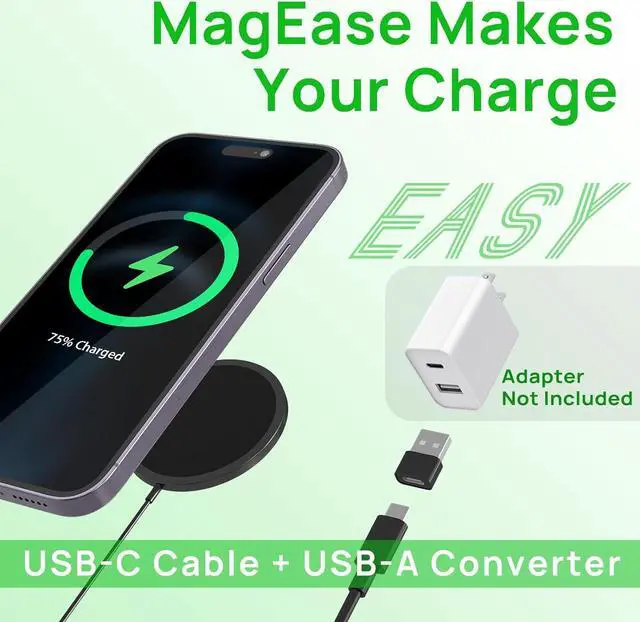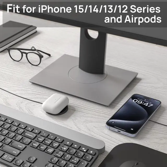 Sleek Design: The MagEase 15W Wireless Charger boasts a slim and stylish design, making it the perfect addition to any desk or nightstand.
