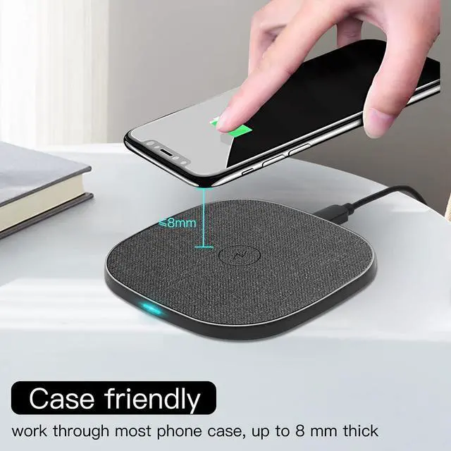 Case Friendly: Wireless Charger Pad works through most phone case, up to 8 mm thick. Keep your phone case on, just place and charge.