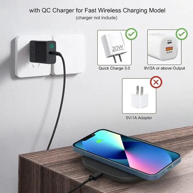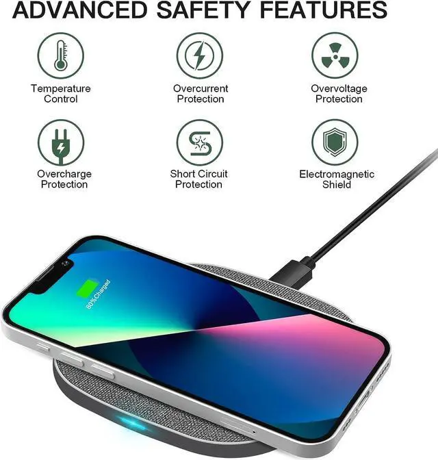 Multiple Safty Protection: Wireless charger pad is Type C input and built-in over-voltage, short -circuit, over-current, over-heating protection, With super soft Led light indicator, iphone wireless charger never bothers your sleep. Having a friendly sleep all night!