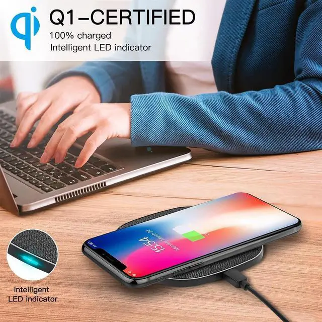 Slim Stylish Fabric Surface wireless charger is designed with full slim stylish Fabric surface which help heat radiation fast. Anti-slip rubber pad on bottom can efficiently keep your phone securely in place and preventing the charger itself from slipping, lightweight and durable.