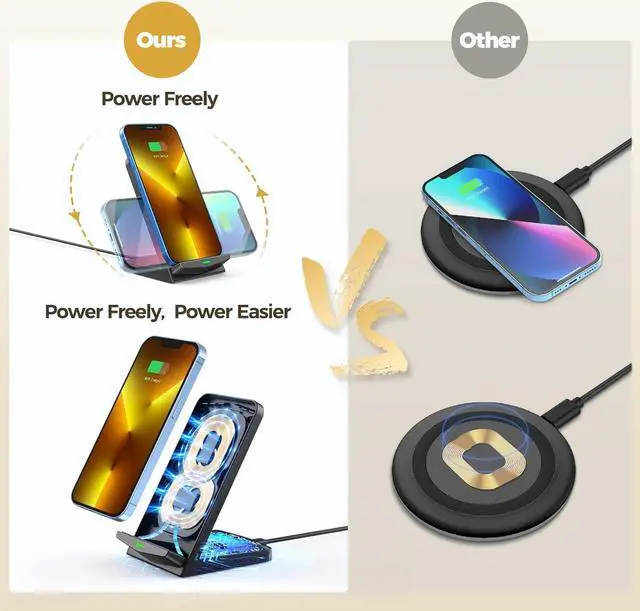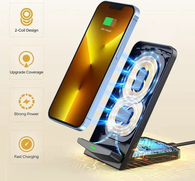- Embrace 15W speed-boosting charging with our upgraded dual coil wireless technology, showing a wider wireless charging area and faster-charging speed-incredibly knocks off at least 45 minutes of your waiting time. (phone charger stand)