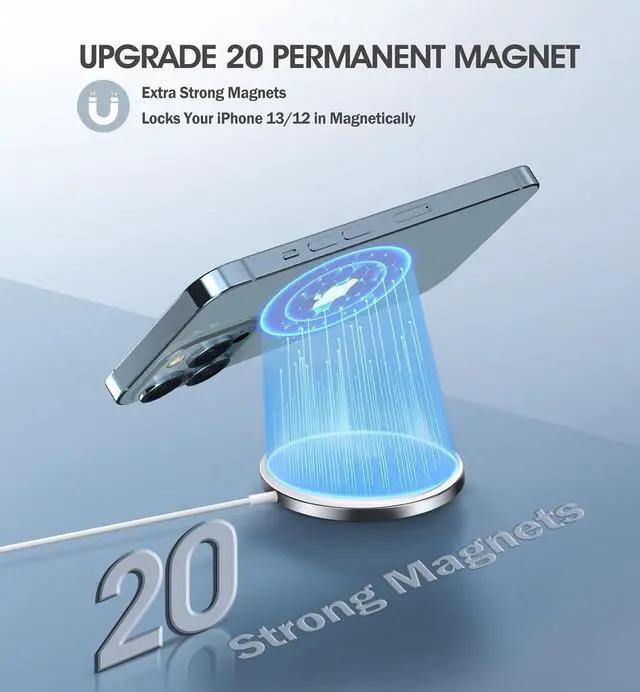 Safe and Reliable Intelligent ProtectionThis Qi-certified wireless charger for iPhone always charges your device safely and securely. A built-in smart chip protects your phone from overheating, overcharging, and short circuits for peace of mind when using a magnetic wireless charger.