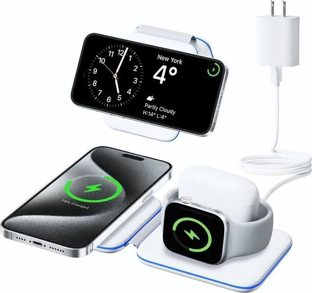 What You GetThe package includes a wireless charger, 18W adapter, USB-C charging cable, user manual. If you have any problems during use, please feel free to contact us. (Compatibility: iPhone 15/Pro/Plus/Pro Max/14/13/12/Pro/Plus/Mini/Pro Max, Apple Watch Series 9/8/Ultra/Ultra 2/7/6/SE/5/4/3/2 and for AirPods 1/2/3/Pro/Pro2).