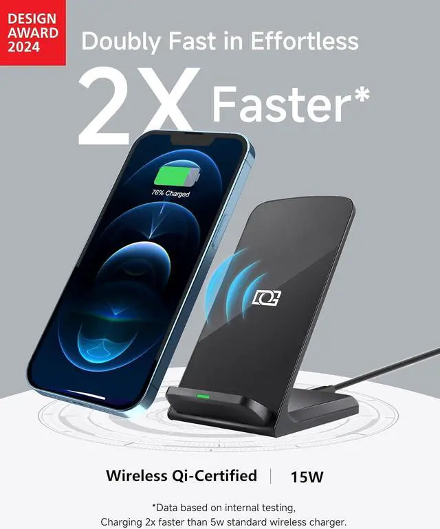Ultra-Fast Charging: Our wireless phone charging stand delivers charging speeds that are 2X faster than standard 5w chargers.