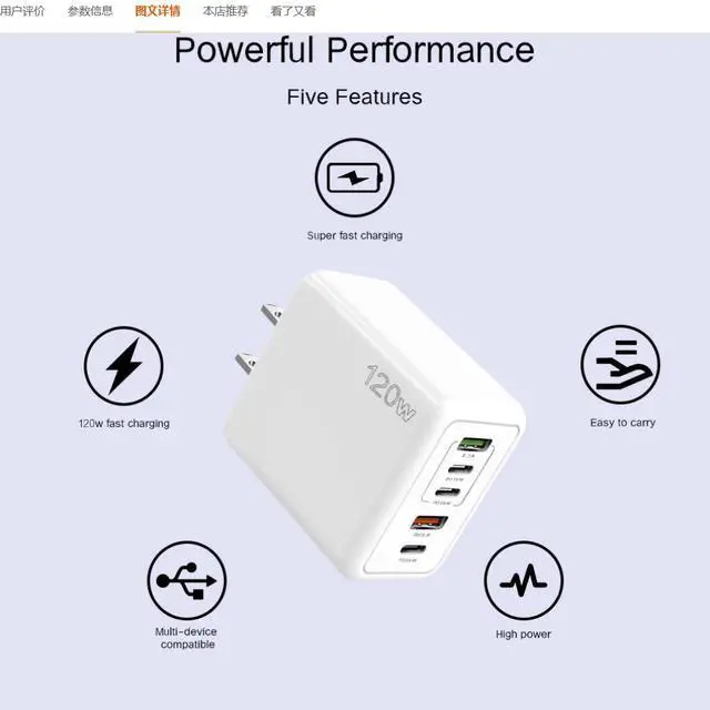 • This charger for two sets of transformers up and down separate charging faster and more stable 120W charger description :3.1A: conventional charging 2 PD18W: conventional charging more than 3 sockets share one output