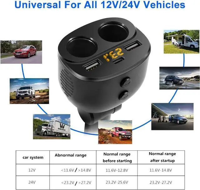 Widely Compatible & Anti-Interference FunctionOur usb car adapter Fits DC 12-24V voltage, suitable for various cars, such as truck, SUV, off-road, bus etc. with anti-interference function design, will not interfere the navigation, DVR, car audio, signal or any