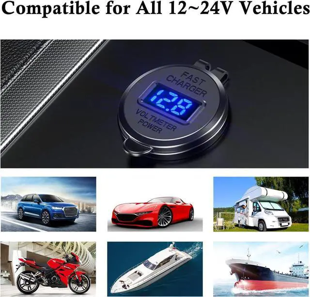 Broad Compatibility -- This 12v usb charger compatible with all DC 12V/24V vehicle such as Car, Boat, Golf Cart, SUV, RV, Motorcycle etc. Car Boat Marine Bus Truck Golf RV Motorcycle etc. And Works with all USB-Powered devices including Apple & Android Smartphones & Tablets, Video Games Controllers, Power Banks, Camera etc.