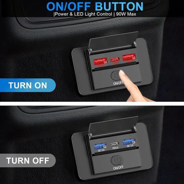 ANTI-SLIP ON/OFF SWITCHOur upgraded 12V usb c outlet is equipped with a sleek, non-slip push-button switchwhich prevents the battery from being drained by constantly lit LEDs, effectively extending the battery's lifespan.
