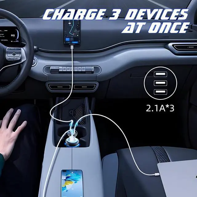 USB Ports Design: Equipped with three USB ports, each rated at 2.1A, this charger allows you to charge three devices simultaneously, providing optimal charging speed for all your gadgets.
