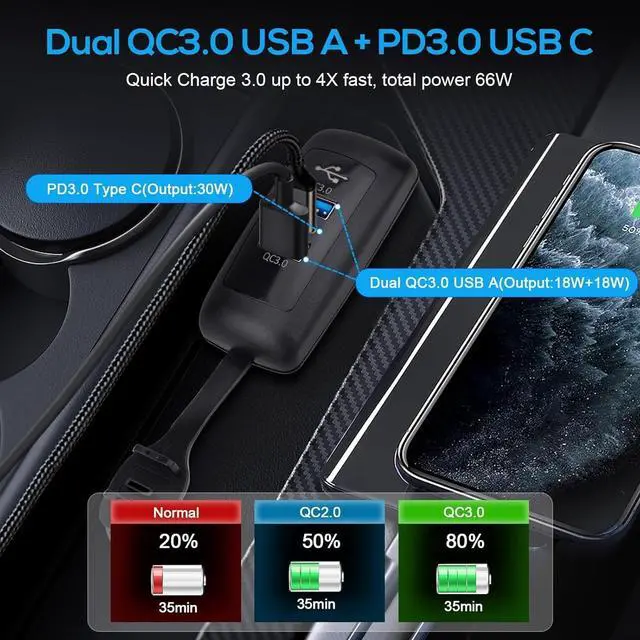 Independent Fast Charging: Dual QC 3.0 18W+18W and PD 3.0 30W ports provide a total of 56W, charging compatible devices up to 4x faster