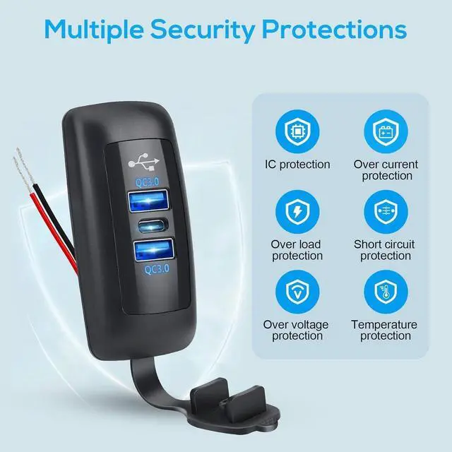 Port Design Output: Dual QC 3.0 USB A and PD 3.0 USB C ports charge 3 devices simultaneously at fast, efficient speeds