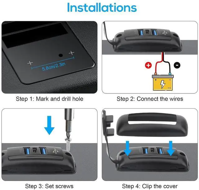 Easy Installation: Simple to mount with screws, drill a hole, insert the socket, secure, and connect the wires. No need for large holes