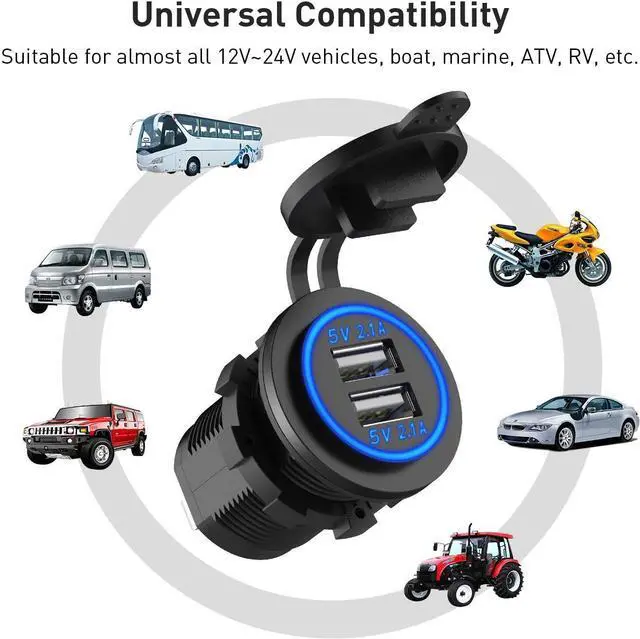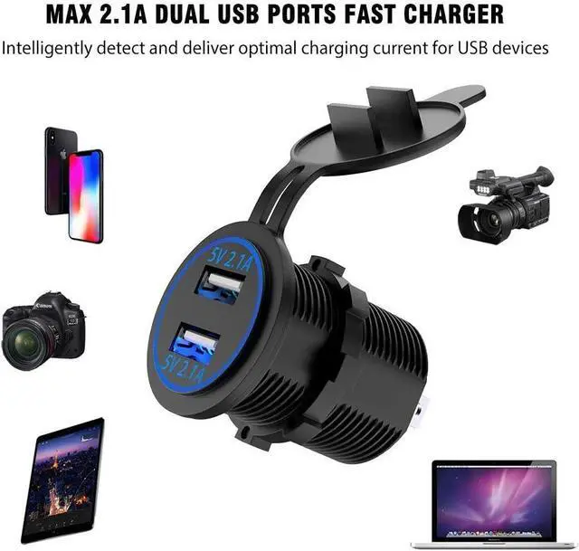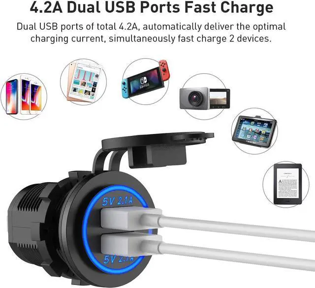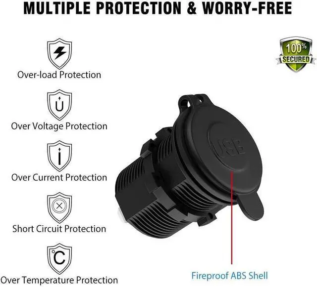 SAFETY: Has built-in 10A fuse, this USB Charger Socket meets CE/ROHS certification and intelligent circuit design protects against short circuiting, over-heating, over-current, and over-charging, without risk of overheating or damaging devices.