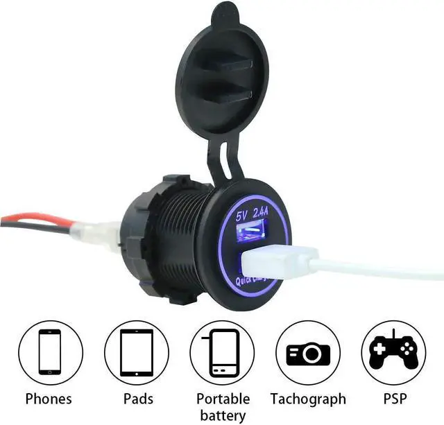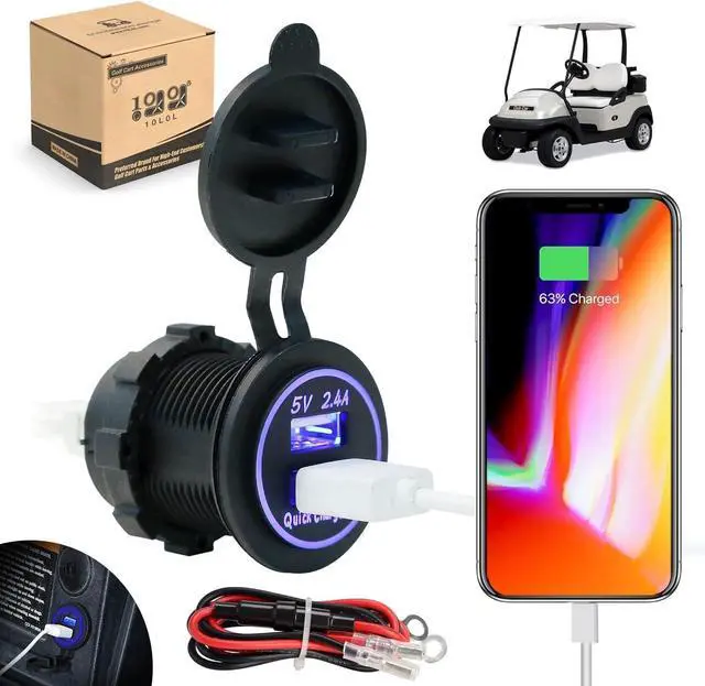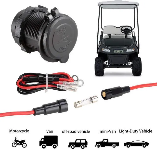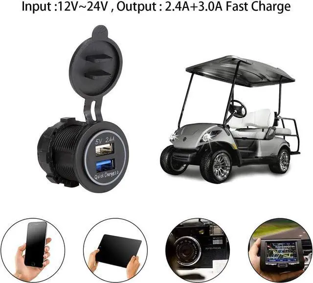 This USB charger socket is especially designed for using with DC power vehicle like Golf Cart, also for Car, Truck, Boat, Motorcycle Marine or RV;