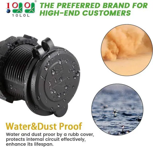 10L0L High Quality Dual USB Charger Socket, waterproof power outlet widely used with electric equipments for power supply: mobile phones, tablets, GPS, cameras, power bank and so on;