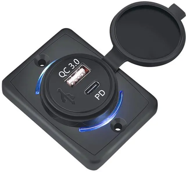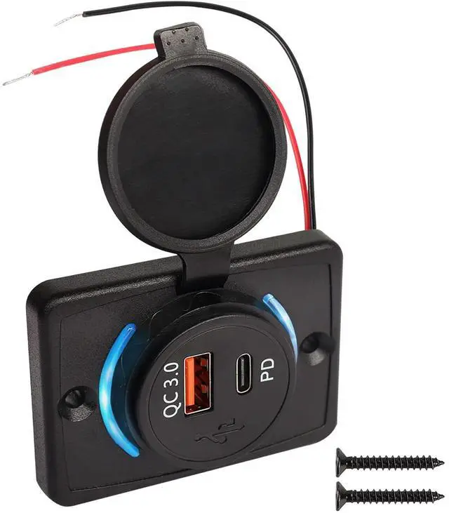 RV USB Outlet with 3.0 USB-C port and Quick Charge USB-A 3.0 Port. you can connect it to power source on PC, laptop, notebook, smart IC chip to support charging, Universally suitable for most 12V/24V Vehicles, Cars, Motorcycles, Boats, RV.
