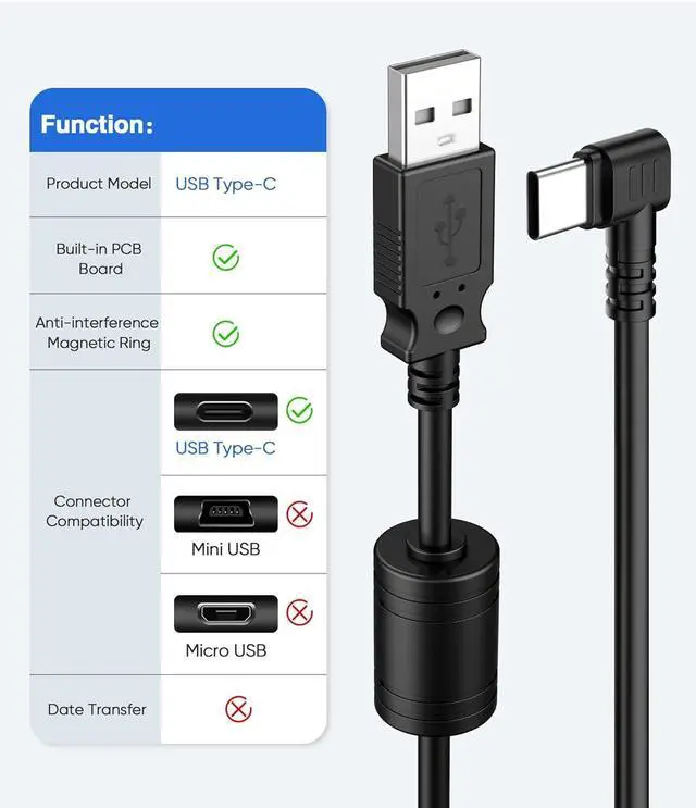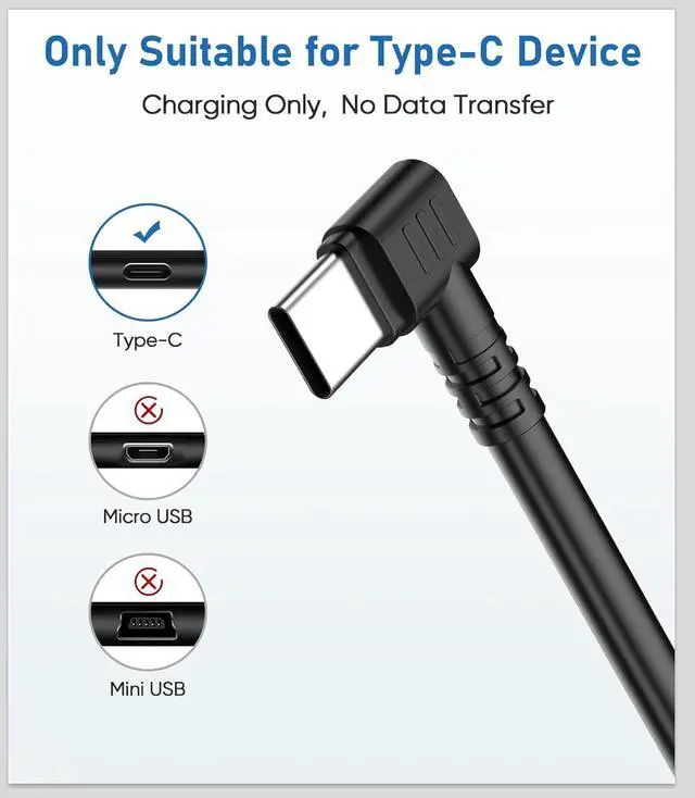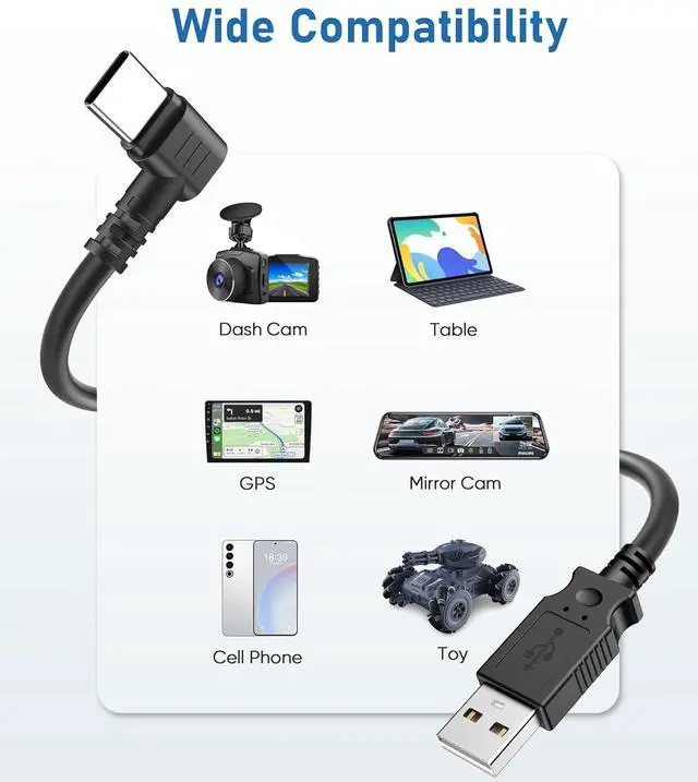90 Degree Angle This USB-C dash cam mirror camera replacement power cord has a 90 degree angle plug design, which is easy to install and reduces the chance of wire damage caused by bending, making it the perfect solution for most cables that need to be replaced with damaged or lost cables.