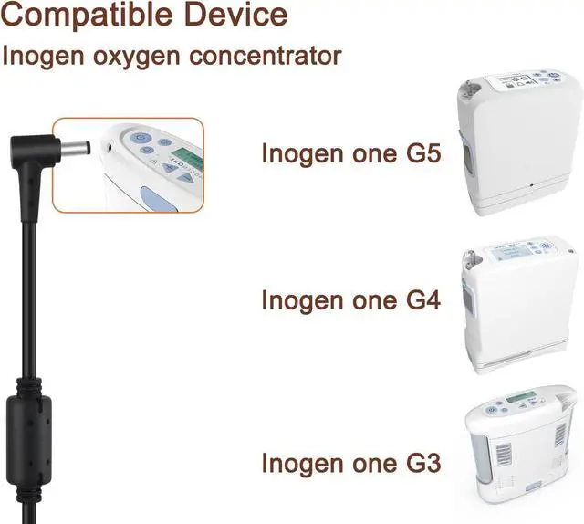 This 12V dc power adapter is great work for your Inogen One G3 Inogen One G4 Inogen One G5 Oxygen Concentrators in the car giving more flexibility to be out of the house.