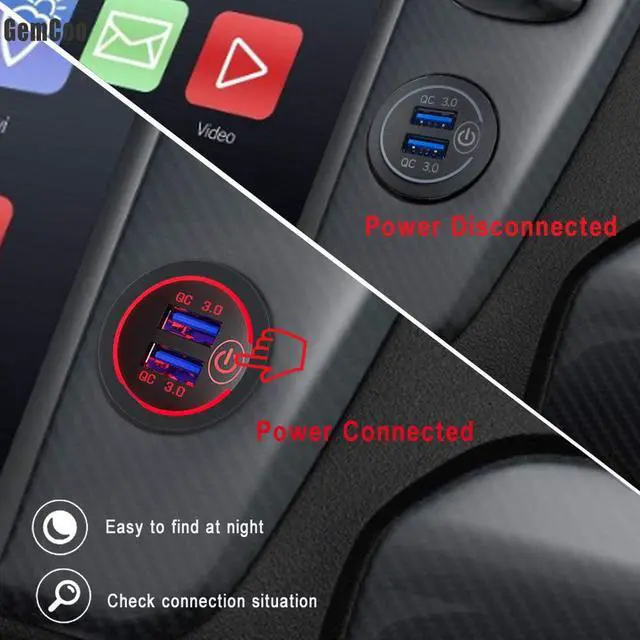 [ON / OFF Touch Switch] The car usb socket is built in with a touch-sensitive on / off switch for power control, which can save energy and extend the life of the product and devices. It saves electricity and does not consume energy when it is turned off.
