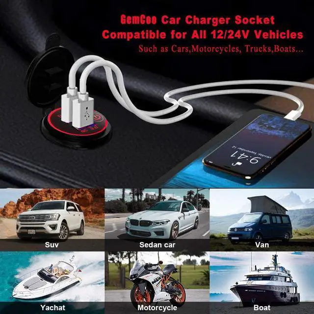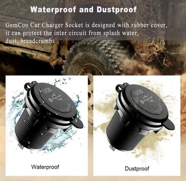 [Water and heat resistant] Made of advanced ABS materials with IP66 sealing, the 12v car socket works well in high and low temperature environments (from -40 ° C to +60 ° C). Suitable for most 12-24V DC vehicles such as cars, boats, bicycles, SUVs, ATVs, recreational vehicles, motorcycles, etc.