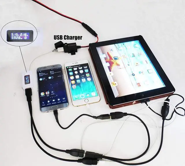 Output: 5V, 3.1A mp. It can charge just about any phone, Tablet, GPS, camera, etc. With the SAE quick release connection design, it can work directly with your exsiting SAE pigtails on your bikes. Also the 7.5A mp fused SAE to Ring Terminal cable included in the kit can work with your battery chargers or maintainers to charge the battery conveniently.