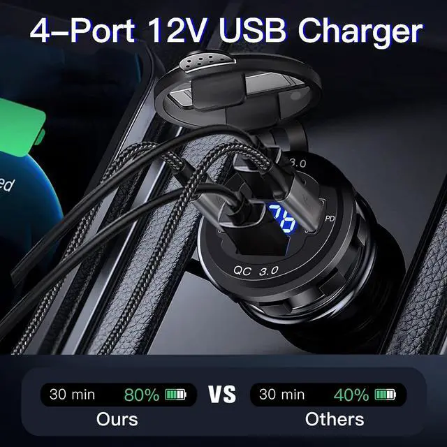 LED Voltmeter Display: The four ports USB socket with a blue LED digital voltmeter, automatically monitors the voltage of the vehicle's battery and displaying the car voltage on the screen, which will let you know the health of your battery at any time.